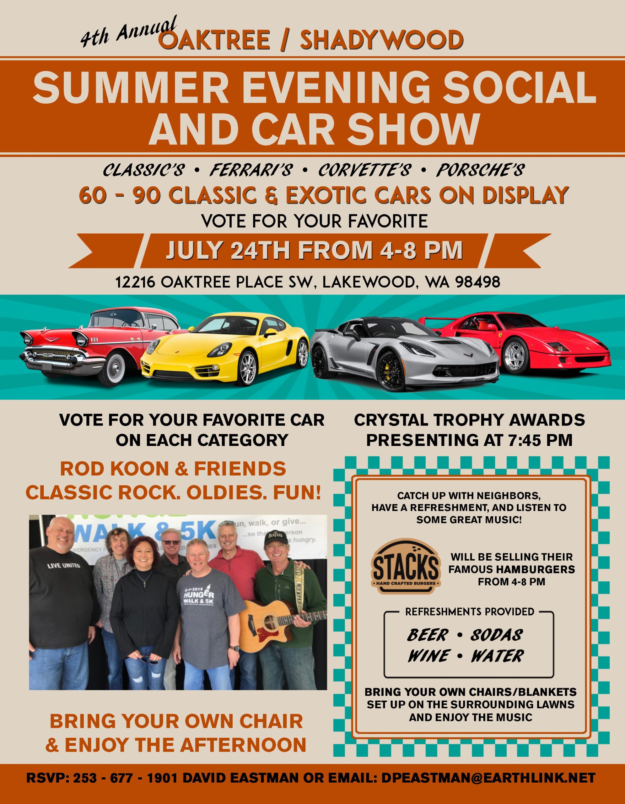 Oaktree/Shadywood Summer Evening Social & Car Show,July 24